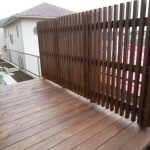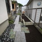 No.193 ウッドデッキと大谷石の菜園 白御影石のアプローチ