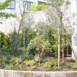 輸入住宅にも合うように、コニファーやオリーブを中心とした植栽プランでご提案させていただきました。 グランドカバーはハーブを植え、花が多く咲くお庭になりました。