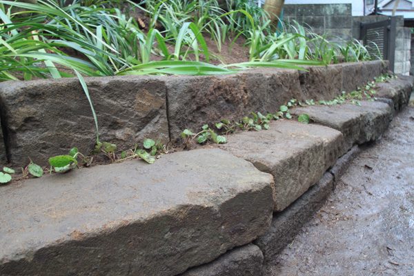 3代に渡りお住まいの施主様から、植木が大きくなってしまったので、植栽の見直しと土留めのご依頼でした。